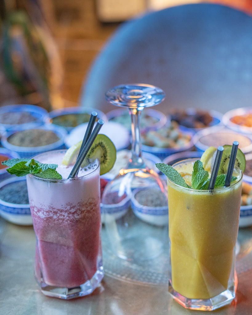 A fresh pear puree and kiwi shaken with apple juice and a touch of orange blossom water